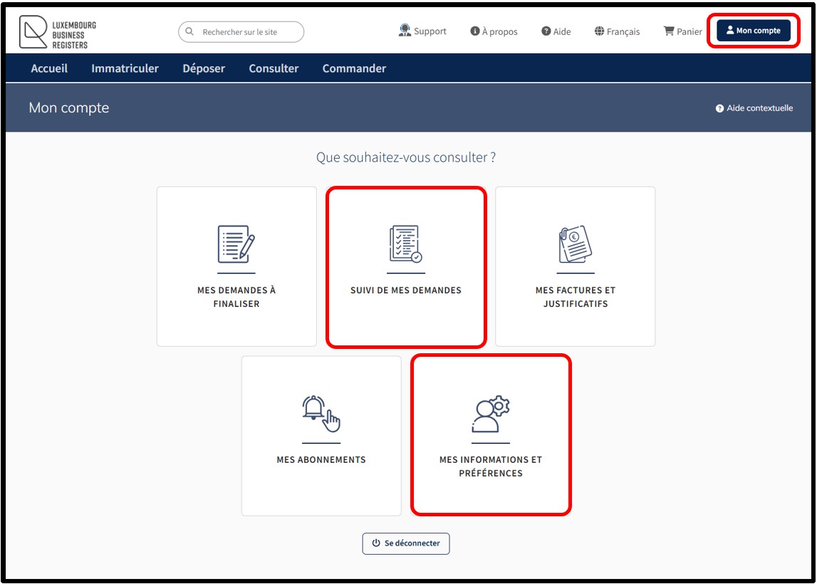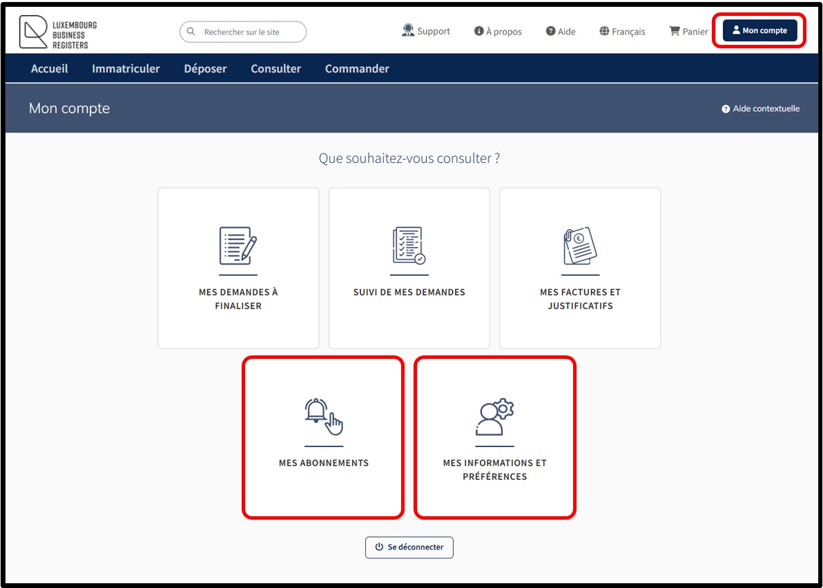 Si l’utilisateur ne souhaite pas recevoir ces e-mails, il lui est possible d’en désactiver la réception depuis le menu Mon compte et de sélectionner Mes informations et préférences.