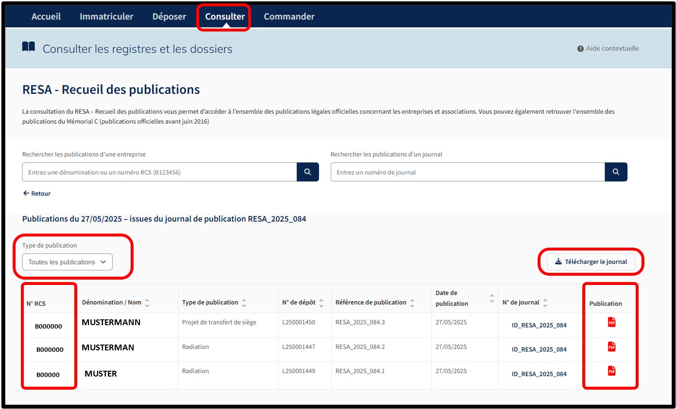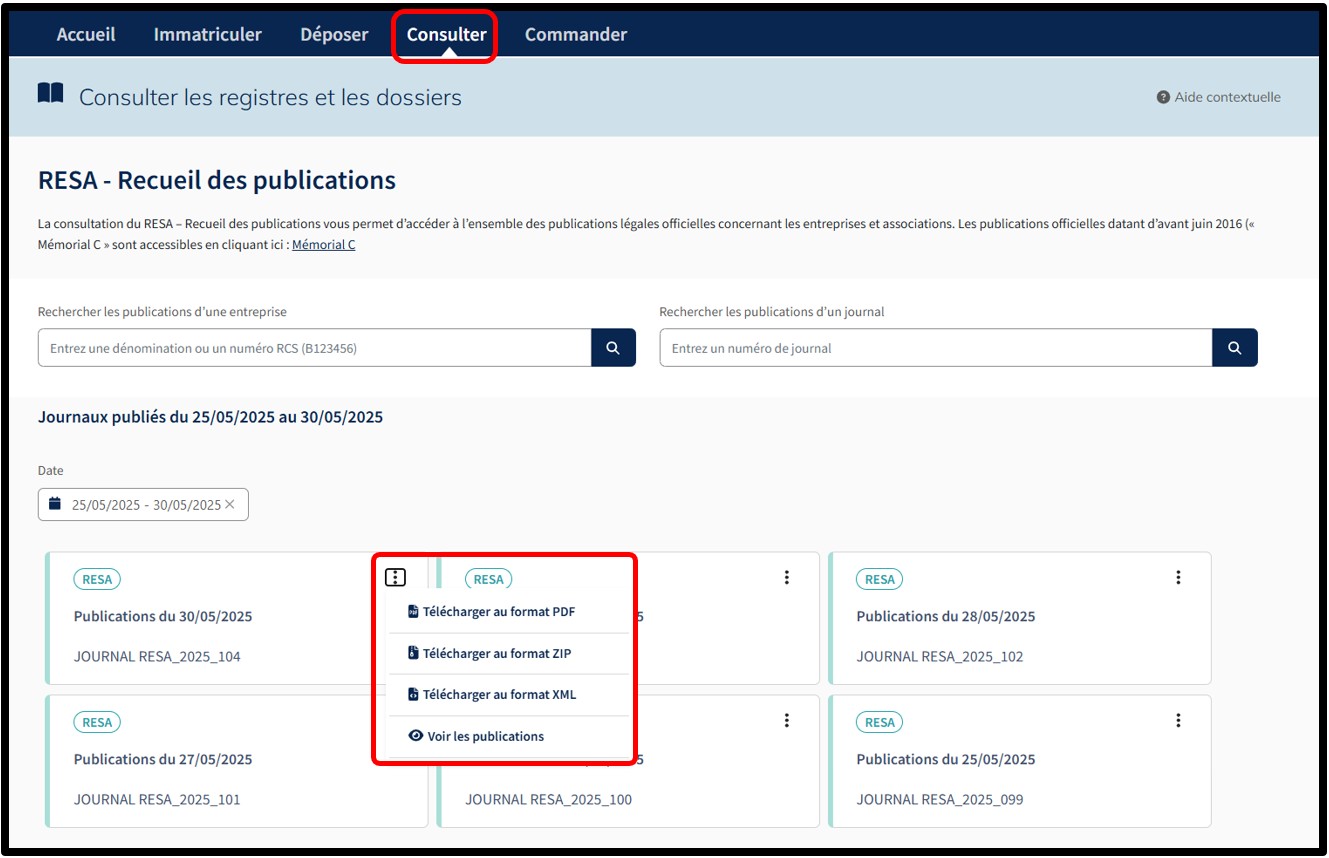 4. Télécharger le journal des publications au RESA pour la date sélectionnée