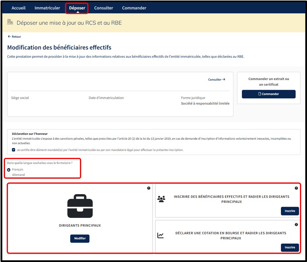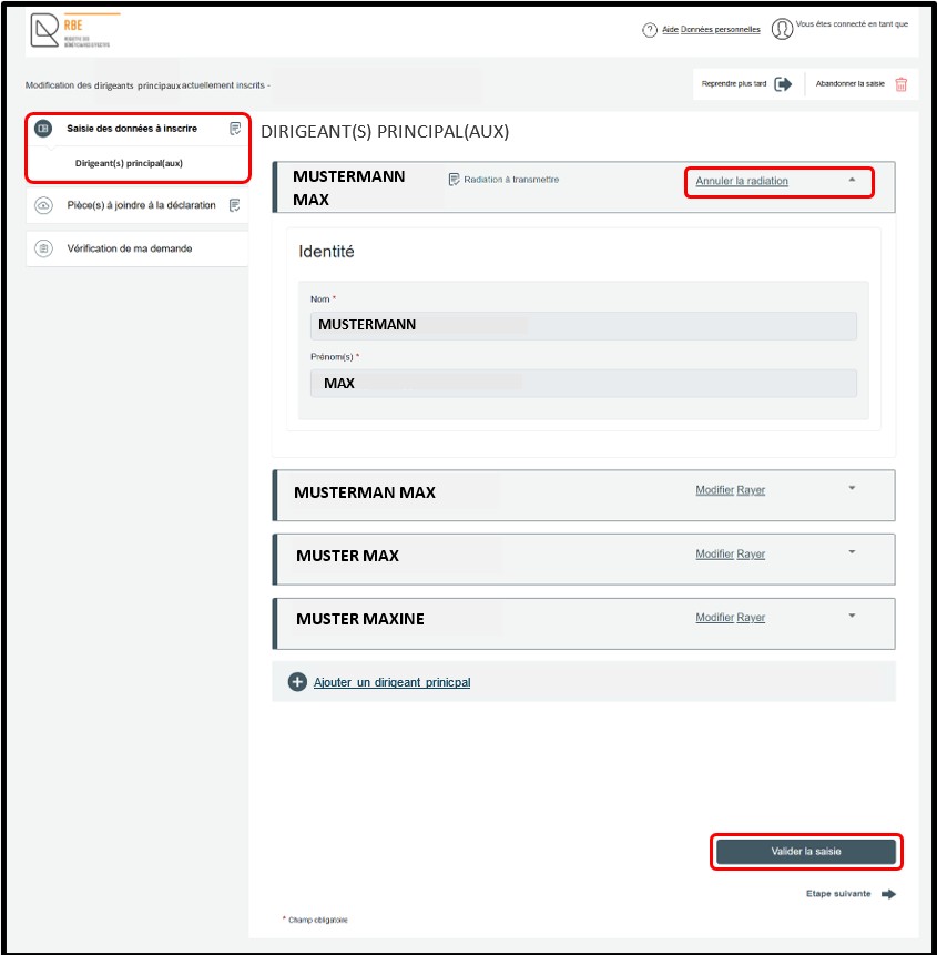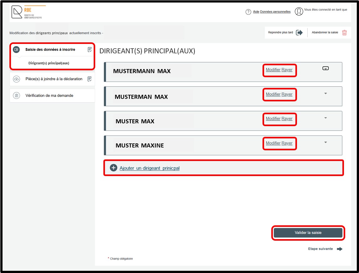 - Inscrire des dirigeants principaux et radier les bénéficiaires effectifs