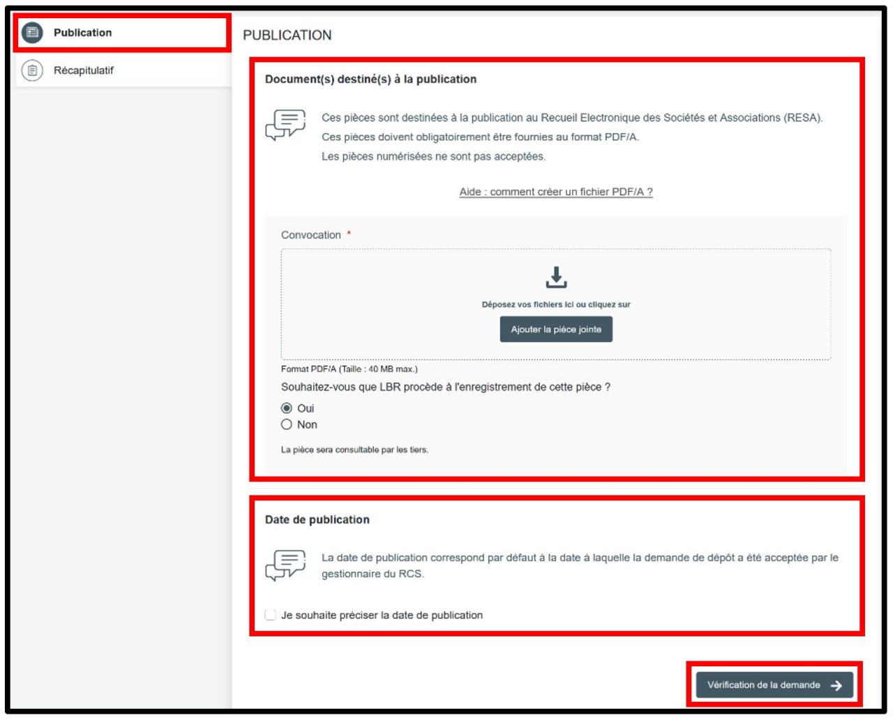Le gestionnaire du RCS est habilité à enregistrer les documents transmis à des fins de publication. L’utilisateur a dès lors le choix d’indiquer lors de sa demande s’il souhaite ou non que LBR procède à l’enregistrement de la pièce en question. Pour ce faire, l’utilisateur est invité à cocher l’une des options disponibles.