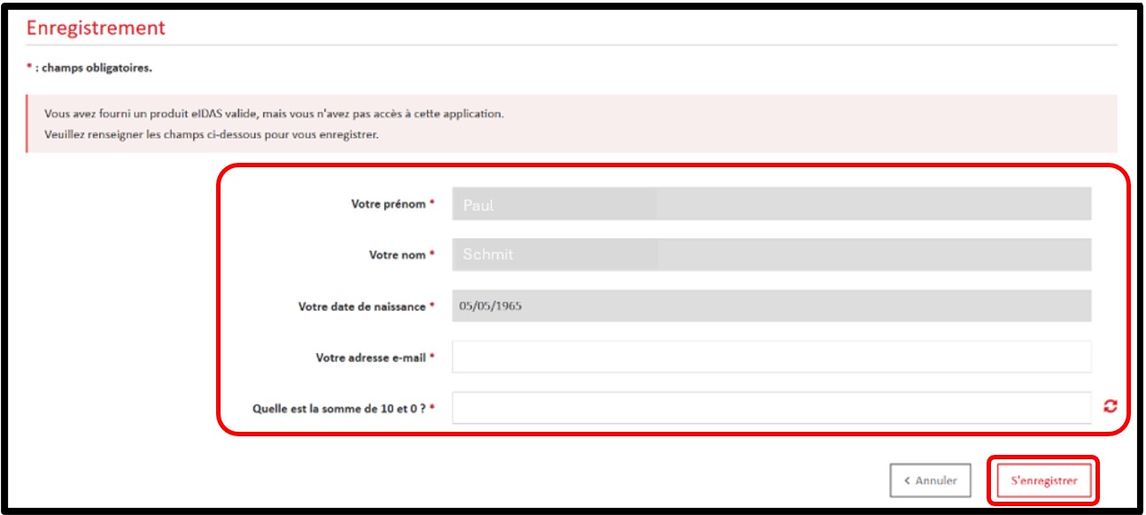 Suite à son authentificatio par certificat eIDAS, l’utilisateur est invité à :