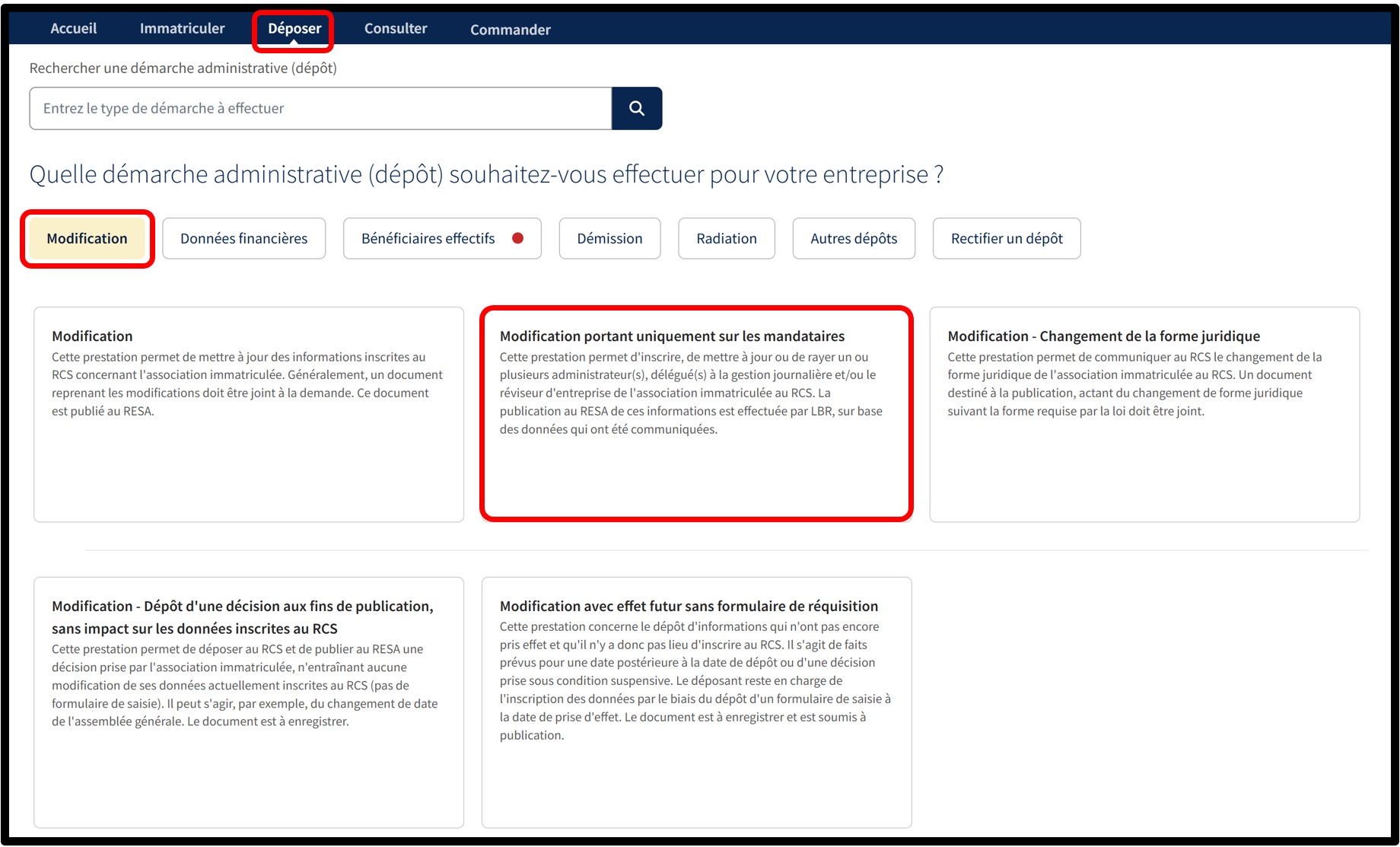 Pour mettre à jour ces informations, vous devez effectuer un dépôt modificatif auprès du RCS. Deux situations peuvent se présenter :