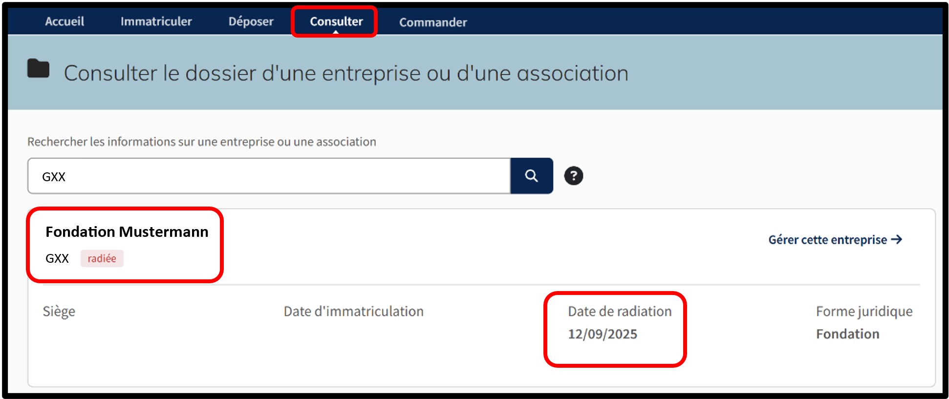 Après avoir consulté les différents dossiers RCS de vos mandataires personnes morales, vous pourrez identifier le mandataire dont le dossier est radié. C’est ce mandataire que vous devrez supprimer de votre liste de mandataires inscrits dans votre dossier RCS.